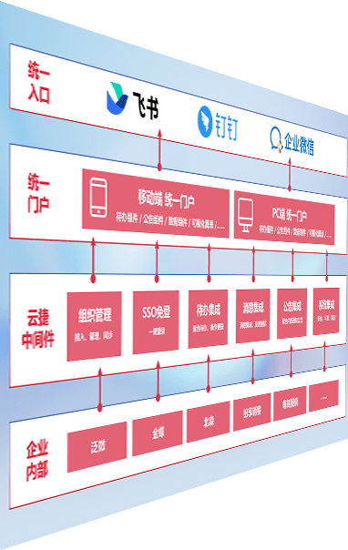 对协作平台提供支持服务,,,,支持企业应用与协作平台对接,,,包含组织同步、、、、消息集成、、、、待办集成等。。支持目前主流的协作平台:钉钉、、、、企微和飞书。。。